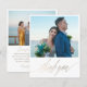 Introducing our modern minimalist thank you card, perfect for expressing your gratitude with elegance and style. This card features large, elegant calligraphy in faux gold foil and includes spaces to showcase two of your special wedding photos. Easy and fun to customize, these thank you cards allow you to create a unique and heartfelt message that perfectly captures your appreciation. Add your personal touch to make these cards truly one-of-a-kind and memorable for your guests.