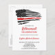 Celebrate your retirement and invite friends and family to your firefighter retirement with this Thin Red Line Firefighter Retirement Invitation - USA American flag design in fireman Flag colors , distressed design . These budget retirement invitation postcards need to be mailed as oversized postcards so may incur standard postage fees but they don't need an envelope or a return address label. Personalize with name, fire department, address venue, and rsvp details. This firefighter retirement invitation can be used for firefighter graduation, simply change the text when personalizing. See our collection for matching fireman retirement gifts, party favors, and supplies. COPYRIGHT © 2020 Judy Burrows, Black Dog Art - All Rights Reserved. Budget Firefighter Retirement Party Invitation