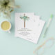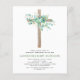 Budget Sage Green Girl's Eucalyptus and Cross Botanical Greenery Watercolor Religious First (1st) Holy Communion Invitations.