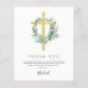 Budget Sage Green Floral Boy's Eucalyptus and Gold Foil Cross Botanical Greenery Watercolor Religious First (1st) Holy Communion Thank You Cards.