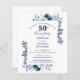 This elegant, navy blue 50th wedding anniversary invitation can be personalized with your information in modern typography. Designed by Thisisnotme©