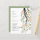 BUDGET Sage green branch with peach flowers and initials wedding invitation with QR code for RSVP. A lovely design for your wedding featuring a cascading sage green and black branch with peach blossoms. The back is of sage green color and features your QR code for your guests to RSVP.