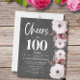 Elegant 100th birthday party invitation featuring a stylish chalkboard black background beautiful white Anemones , and a classic birthday Cheers to 100 text template that is very easy to personalize by clicking on PERSONALIZE BUTTON.