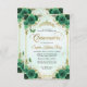 Modern Glam Floral Botanical Emerald Green Gold Tiara Sparkle Glitter RSVP Birthday Quinceañera Invitation