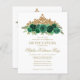 Modern Floral Emerald Green Gold Tiara Sparkle Glitter Birthday Quinceañera Invitation