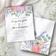 Elegant boho wedding invitation featuring a watercolor floral design with sage green eucalyptus, pink and orange roses, and delicate lavender. This romantic and sophisticated template showcases hand-painted botanical elements adorning the top edge and back. Perfect for rustic, garden, or vintage weddings, this customizable invitation suits bohemian, modern, and classic wedding themes. Ideal for spring, summer, and fall weddings, bridal showers, or engagement parties.