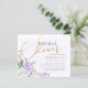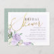 Elegant bridal shower invitation featuring faux gold foil script against a light purple/lavender overlay with beautiful watercolor peonies and roses in shades of light purple cream. Your details are displayed with simple, stylish typography. As part of the budget selection here on Zazzle, these invitations come in limited sizes and paper stocks. If you need a different size or paper stock, this design can be transferred to a standard 5x7 format using the design transfer tool for more options.