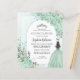 Floral Dusty Light Green Princess Gown Dress Glitter Sparkle Tiara Crown Butterfly 15th Birthday Quinceanera Invitation