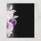 The left-hand edge of this elegant modern wedding invitation features a floral bouquet in shades of purple and lavender, trimmed with silver faux foil and faux glitter foliage and sprinkled with silver faux glitter. The customizable text combines pale silver gray calligraphy script and sans serif font on a black background. The reverse side features a matching floral design.