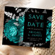 Elegant Moody Dark Floral Teal Silver WeddingDesigned by Akhates Designs