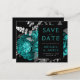 Budget Floral Teal Silver QR Code Save the Date