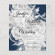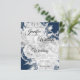 Budget Floral Wedding Invitation Silver & Navy