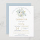 A budget price SMALLER 4.5” x 5.6” alternative. Available in a SEMI-GLOSS 110 lb CARD STOCK which is the default option (thicker for invitations), OR a SATIN FINISH 80 lb THINNER PAPER STOCK (ideal for enclosures). Envelopes are an optional extra and are slightly larger than the card size. Elegant style to invite your guests to your 60th birthday party, with this rustic bouquet of white flowers and eucalyptus leaves, and stylish typography which is easy to personalise to your own details. The blue background on the other side coordinates with the blue of the leaves. You can change the color to a different one if preferred, and also the text colors if you wish via the customise further option.