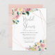 Celebrate your bridal shower with this floral-themed invitation featuring watercolor flowers in pink and blush tones with lush greenery on the corners placed on top of a faux gold foil geometric frame. "Bridal Shower" appears in chic calligraphy font with your party details in elegant serif typography. Click on "Personalize this template" and start adding your own information. As part of the budget selection here on Zazzle, these invitations come in limited sizes and paper stocks. If you need a different size or paper stock, this design can be transferred to a standard 5x7 format using the design transfer tool for more options.