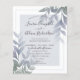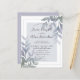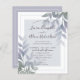 Pretty wedding design, featuring purple and green foliage with a dusty blue overlay. Modern and elegant, this is the perfect invitation for you to customize.