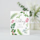 Winter Foliage Script Christmas Wedding. A budget price SMALLER 4.5” x 5.6” alternative. Available in a SEMI-GLOSS 110 lb CARD STOCK which is the default option (thicker for invitations), OR a SATIN FINISH 80 lb THINNER PAPER STOCK (ideal for enclosures). Envelopes are an optional extra and are slightly larger than the card size. With your festive wedding in mind, a border of holly, ferns, mistletoe and berries is on the front with Wedding in a set informal script with your names, and the details are on the back. Easily personalise the editable text, and if you wish to change the white background on the back to another color you can do so via the customise further option.
