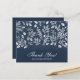 These navy blue flat thank you notes are an excellent value printed on 110 lb paper and feature a white leaf pattern, the words "Thank You" and your name in chic white lettering on the front and your personal message on the back. Perfect thank you notes for your wedding, bridal shower, baby shower, birthday, anniversary, graduation, or any special event. WHITE envelopes are optional. Measures 4.5" x 5.6", but you can choose from 3 paper sizes. MORE COLORS in our collection.