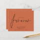 Budget Decided on Forever QR code Terracotta Save the Date A budget price SMALLER 4.5” x 5.6” alternative. Available in a SEMI-GLOSS 110 lb CARD STOCK which is the default option (thicker for invitations), OR a SATIN FINISH 80 lb THINNER PAPER STOCK (ideal for enclosures). Add your QR code to your wedding website on the back. A stylish set script is in the center.The rest of the text you can easily personalize. Text and background colors can be changed if you wish to better suit your wedding theme via the customize further option.