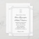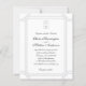This wedding invitation has a clean and classic black and white design that feels timeless and elegant. It features a simple double-line border with soft corner details that frame the layout beautifully. At the top, there’s a refined oval monogram for a personal touch. The mix of script and serif fonts gives it a romantic, formal feel like traditional calligraphy, but with a modern twist. A great choice for couples who love minimalist style with a hint of vintage charm.
