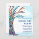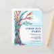 It is decorated with a mosaic tree and a watercolor blue sky.