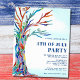 It is decorated with a mosaic tree and a watercolor blue sky.
