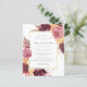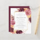 Elegant celebration of a life invitation features deep burgundy and dusty pink roses as well as golden ivory hydrangeas decorating a gold frame. The deceased person's name is written in a traditional script text. All of the text can be easily edited to create a personal remembrance.