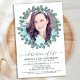 Modern Eucalyptus Memorial Funeral / Celebration Of Life Invitation. These sympathy funeral invitations feature a photo in a eucalyptus greenery wreath design. Personalize this celebration of life funeral invitation with your loved ones photos, name & dates, event details. COPYRIGHT © 2021 Judy Burrows, Black Dog Art - All Rights Reserved. Budget Funeral Greenery Photo Celebration Of Life