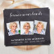 Modern Sympathy 3 Photo Funeral Thank You Cards. These sympathy funeral cards feature a unique photo collage for 3 of your favorite photos, name and dates, on a rustic chalkboard design. Personalize back with your message of thanks. These Forever in our Hearts sympathy thank you cards are perfect for funeral thank you notes, memorial service, and celebration of life. COPYRIGHT © 2020 Judy Burrows, Black Dog Art - All Rights Reserved. Budget Funeral Thank You Sympathy 3 Photo