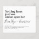 Invite friends and family to join you for your wedding celebrations with this funny wedding invitation. The text reads "Nothing fancy just love and an open bar" Please note that our range of budget wedding stationery doesn't ship with envelopes. You can order A6 envelopes from your favourite office supply store.