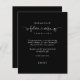 Budget Future Mrs Bridal Shower Black and White Thanks. A budget price SMALLER 4.5” x 5.6” alternative. Available in a SEMI GLOSS 110 lb CARD STOCK which is the default option (recommended for invitations), OR a SATIN FINISH 80 lb THINNER PAPER STOCK (ideal for enclosures). Envelopes are an optional extra and are slightly larger than the card size. The Future Mrs is in a whimsical set script with engagement ring and heart motifs and the rest of the text you can easily personalise.