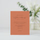 Future Mrs Bridal Shower Terracotta Thanks. A budget price SMALLER 4.5” x 5.6” alternative. Available in a SEMI GLOSS 110 lb CARD STOCK which is the default option (recommended for invitations), OR a SATIN FINISH 80 lb THINNER PAPER STOCK (ideal for enclosures). Envelopes are an optional extra and are slightly larger than the card size. The Future Mrs is in a whimsical set script with engagement ring and heart motifs and the rest of the text you can easily personalise. You can also change text and background colors on either side if you wish via the Customize Further option.