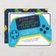 Get ready to level up the excitement at your next birthday party with our cool gamer-themed invitation budget design. The bright blue game console takes center stage, with bold red capitals shouting "Game On!" to set the tone for an epic gaming extravaganza. The party details are placed on the controller, ensuring all the necessary information is at hand. On the reverse side, there is a vibrant pattern of game consoles in navy blue, light blue, green, red, and yellow. Ideal for a games-themed party, a video game sleepover, or a gamer celebration. Get ready to embark on a gaming journey like no other and let the gaming frenzy begin! As part of the budget selection on Zazzle, this sheet isn't a standard invite size or paper quality. If you want this design on an invitation card you can find it in our store or use the Zazzle Make Machine to transfer it onto the product of your choice. Feel free to message me with any questions, please note that I cannot modify an existing order. Browse the collection link on this page for more boy birthday invitations.
