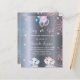 For a gender reveal baby shower. A modern faux silver metallic looking background. Decorated with glitter and blue, pink and white balloons and glitter dust. A baby boy elephant and a gaby girl elephant. Personalize and add the name of the mom to-be and party details. The name and the text: Boy or Girl are written with a hand lettered style script