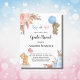 For a modern boho style baby shower, gender reveal party. A white background. Decorated with rose gold, pink and light blue florals, roses, pampas grass and a two teddy bears holding balloons. Personalize and add a name and party details.