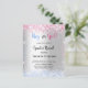 A faux silver looking background. Decorated with pink and light blue glitter, sparkles. Personalize and add a name and party details.
