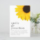Giant Sunflower Modern Typography Wedding. A LARGER size 5.5” x 8.5” at a budget price, on a SEMI GLOSS 110 lb CARD STOCK, great for invitations, at roughly the same thickness as a postcard, or an elegant 110 lb LINEN stock – for a luxury, slightly thinner feel at great value. PLEASE NOTE THE OPTIONAL ENVELOPES ARE A LITTLE BIGGER IN SIZE AT 6.75” x 9” approx. This budget size alternative is also available in other paper choices. The FELT 100 lbs paper is buff colored, NOT white, so adds a rustic touch. The MATTE 80lbs paper stock is bright white, for crisp printing, great for your menus and programs, whilst the SATIN 80lbs paper is thin and light, ideal for enclosures. A giant sunflower is to the top right hand corner and your first names are large in stylish lowercase to the bottom left with the details beneath. Easily personalise the text.