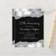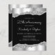 This trendy 25th wedding anniversary party invitation features sparkly silver faux foil and glitter top and bottom borders on a black background. The words "25th Anniversary" and the first names of the couple appear in casual silver gray handwriting script, with the rest of the customizable text in sans serif font. The same silver foil and glitter border design appears on the reverse side.