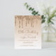 This trendy 18th birthday party invitation features a sparkly gold faux glitter drip border and ombre background. The words "18th Birthday" and the name of the guest of honor appear in casual gold handwriting script, with the rest of the customizable text in gold sans serif font. The same gold glitter drip design appears on the reverse side.