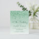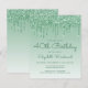 This trendy 40th birthday invitation features a sparkly green faux glitter drip border and green ombre background. The words "40th Birthday" and the name of the guest of honor appear in casual green handwriting script, with the rest of the customizable text in green sans serif font. The same green glitter drip design appears on the reverse side.