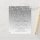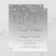 This trendy Sweet Sixteen birthday invitation features a sparkly silver faux glitter drip border and silver gray ombre background. The words "Sweet Sixteen" and the name of the guest of honor appear in casual gray handwriting script, with the rest of the customizable text in sans serif font. The same silver glitter drip design appears on the reverse side.