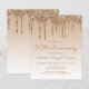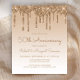 This trendy 50th wedding anniversary party invitation features a sparkly gold faux glitter drip border and ombre background. The words "50th Anniversary" and the names of the couple appear in casual gold handwriting script, with the rest of the customizable text in gold sans serif font. The same gold glitter drip design appears on the reverse side.