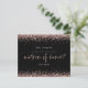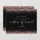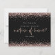 Glitter Rose Gold Matron Of Honor Request. A budget price SMALLER 4.5” x 5.6” alternative. Available in a SEMI-GLOSS 110 lb CARD STOCK which is the default option (thicker for invitations), OR a SATIN FINISH 80 lb THINNER PAPER STOCK (ideal for enclosures). Envelopes are an optional extra and are slightly larger than the card size. An elegant set typography for Matron of Honor and the rest of the text which you can easily personalise, with rose gold faux glitter confetti borders at the top and bottom and also on the back.