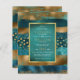 BUDGET Gold and teal brush paint strokes and confetti wedding Invitation. This beautiful design features brush strokes in teal blue and gold and confetti. Your text is in a teal frame with gold border.