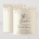 Elegant, chic and budget-friendly 50th birthday party invitation with "50 & Fabulous" written in stylish script against a gold background, with gold faux glitter dripping from the top. Personalize with her name and the party details.