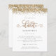 Gold Glitter Any Age Script Birthday Party Invite. A budget price SMALLER 4.5” x 5.6” alternative. Available in a SEMI GLOSS 110 lb CARD STOCK which is the default option (recommended for invitations), OR a SATIN FINISH 80 lb THINNER PAPER STOCK (ideal for enclosures). Envelopes are an optional extra and are slightly larger than the card size. Glam style with a border of faux gold glitter at the top on each side, and Celebrate in an artsy set script with elegant swashes. Easily personalise the rest of the text to your own details. You can also change the text and background colors via the customise further option if you wish.