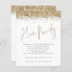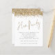 Budget Gold Glitter Hen Party Invitation. A budget price SMALLER 4.5” x 5.6” alternative. Available in a SEMI GLOSS 110 lb CARD STOCK which is the default option (recommended for invitations, similar to the thickness of a postcard), OR a SATIN FINISH 80 lb THINNER PAPER STOCK (ideal for enclosures). Glam elegance with a faux glitter border at the top on both sides and occasion header in a set informal script. Easily personalise the rest of the text to your own details.