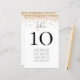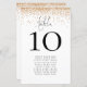 Gold Glitter Script Names Wedding Table Number. A budget price 5.5” x 8.5" FLAT card on a shiny SEMI GLOSS 110 lb card stock (similar to the thickness of a postcard). An elegant design with table in a set handwriting style script and your table number beneath and names of guests on that table. Easily personalise the number and names. A gold faux glitter border runs along the top edge. The same design is on the other side and both sides will update simultaneously when you make your changes.