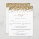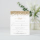 A value for money BUDGET alternative on a smaller size 4.5 x 5.6” semi-gloss 110lbs weight, which is of similar thickness to a postcard (however is not suitable to use as a postcard.). PLEASE NOTE there is ONE invite per sheet. Budget Gold Glitter QR Code Script Wedding RSVP. A faux glitter border at the top on both sides with an elegant script with swashes for the header. Swap in your QR code to your wedding website reply page for a convenient alternative reply option for your guests. To create a QR code, search online "generate a QR code"
