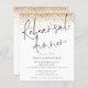 A budget price SMALLER 4.5” x 5.6” alternative. Available in a SEMI-GLOSS 110 lb CARD STOCK which is the default option (thicker for invitations), OR a SATIN FINISH 80 lb THINNER PAPER STOCK (ideal for enclosures). Envelopes are an optional extra and are slightly larger than the card size, This modern design has elegant informal set script for Rehearsal Dinner and a border of gold faux glitter at the top on each side. The rest of the typography you can easily personalise. You can also change text and background colors on either side if you wish via the Customize Further option.