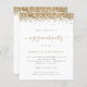 A value for money BUDGET alternative on a smaller size 4.5 x 5.6” semi-gloss 110lbs weight, which is of similar thickness to a postcard (however is not suitable to use as a postcard.). PLEASE NOTE there is ONE invite per sheet Budget Gold Glitter Script Engagement Party Invite. Glam style with a border of faux gold glitter at the top on each side, and engagement party is in a handwriting style script. Easily personalise the text to your own details. You can also change the text and background colors via the customise further option if you wish.